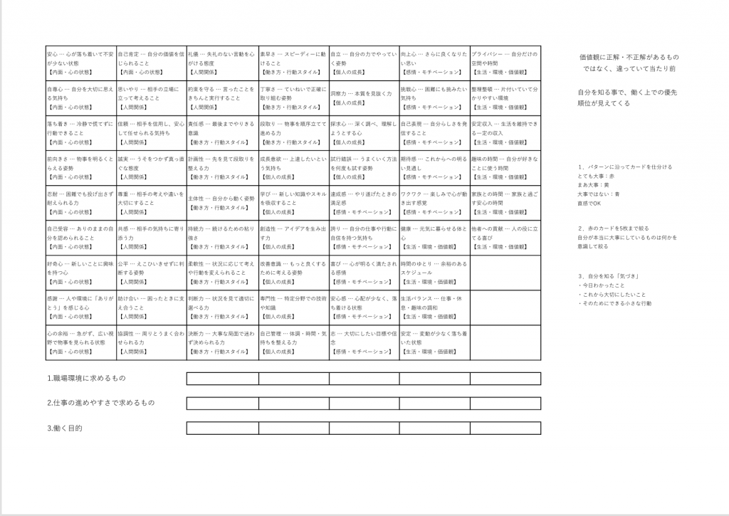 ◆ 価値観を知ると、働き方が変わる