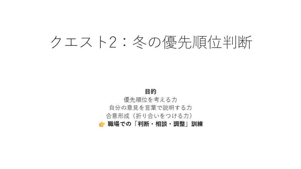 プログラム【チームクエスト:冬の試練を突破せよ!】