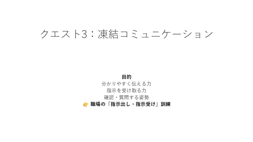 「分かっているつもり」より「確認する一言」の大切さが重要だと改めて感じました。ほぼ一致して最終ミッションに進みました。