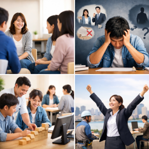実際に来所して頂き、事業所の雰囲気を⾒てもらったり、お話を伺わせて頂きます。オンラインも可能です。