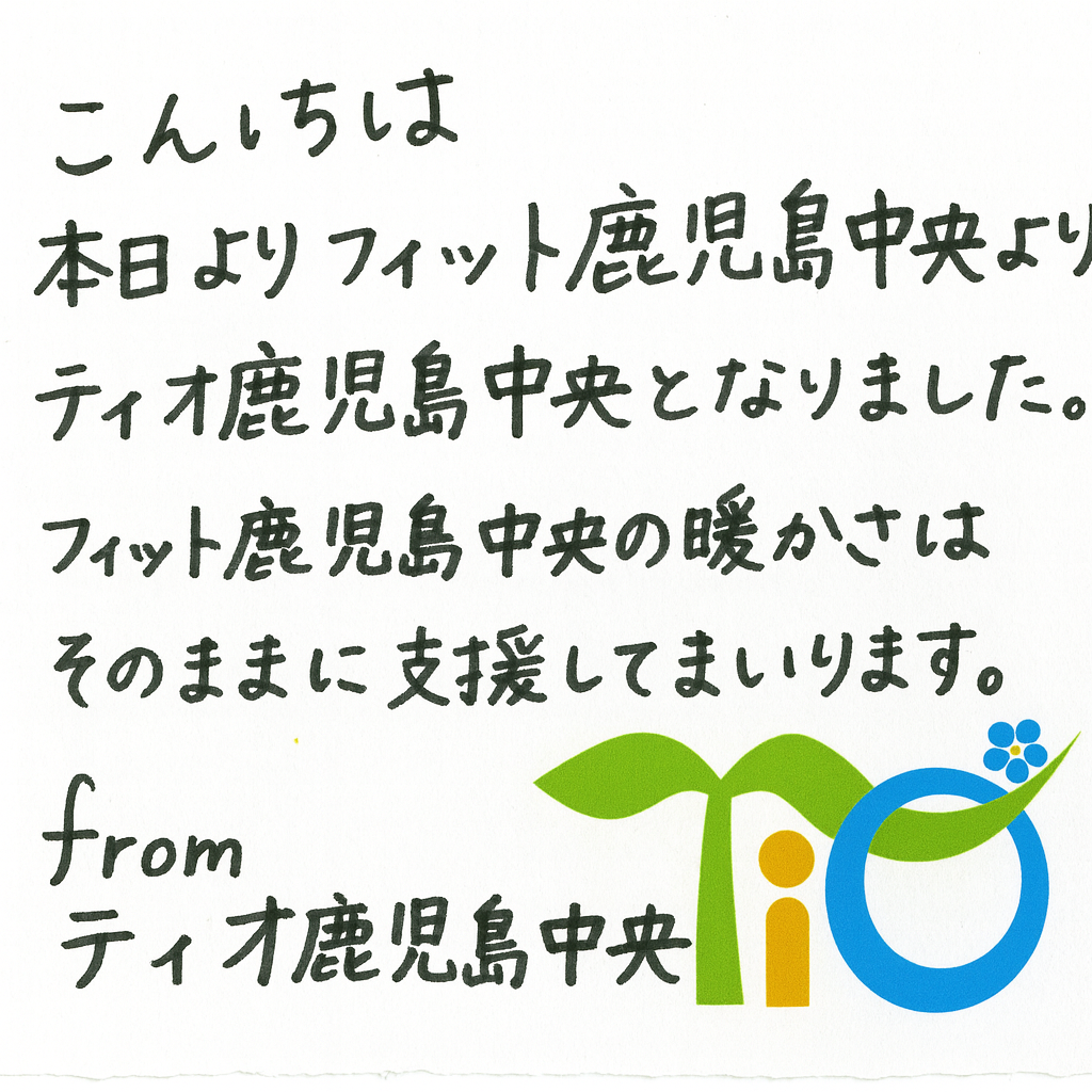 こんにちは、本日よりフィット鹿児島中央より、ティオ鹿児島中央となりました。フィット鹿児島中央の暖かさはそのままに、ティオの教育力×実績に基づいて支援強化してまいります。