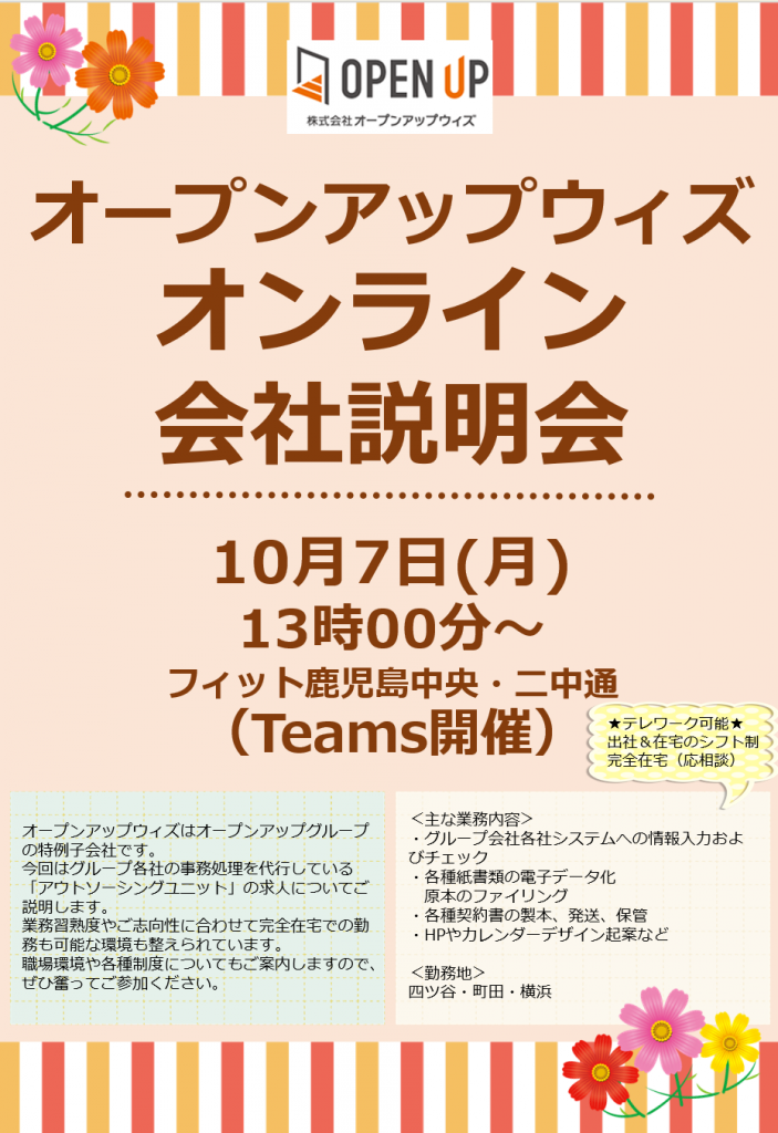 【2024年10月7日】オープンアップウィズの会社説明会が開催されます!