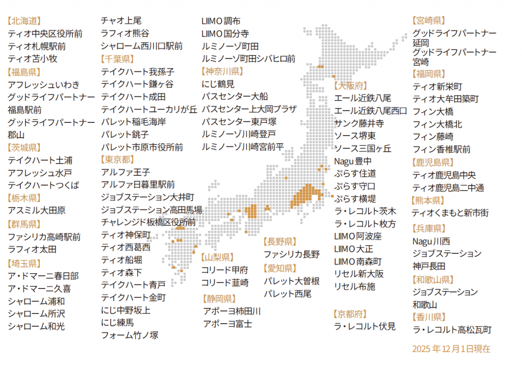 ティオ鹿児島中央は全国に広がる就労支援ネットワークに所属しています