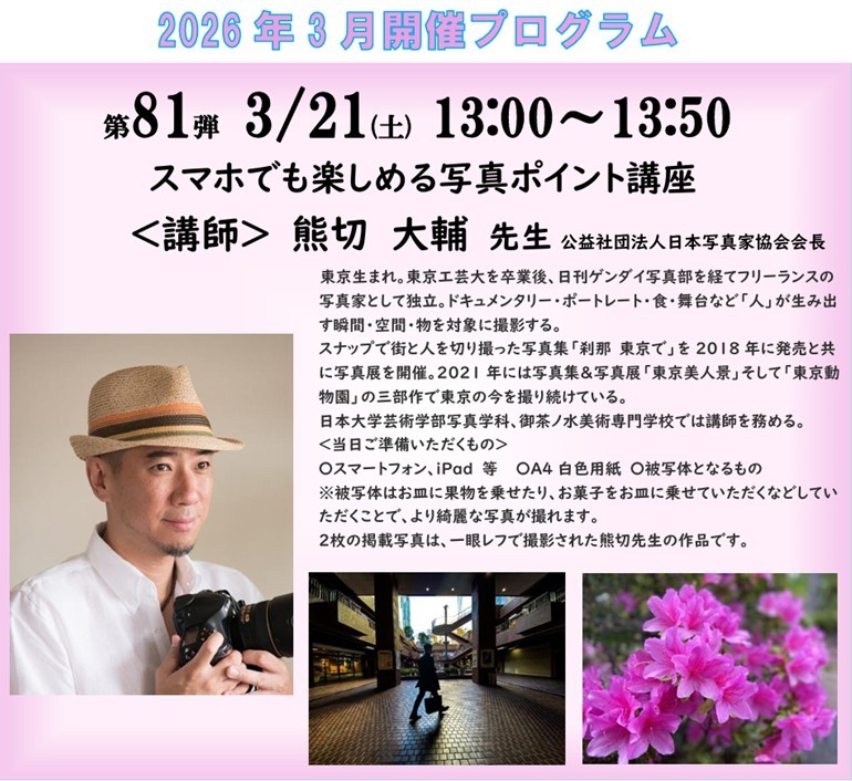 「繋がってるよ!笑顔になろうよ!」シリーズ第81弾『スマホでも楽しめる写真ポイント講座』~3月21日(土)~開催のお知らせ✨